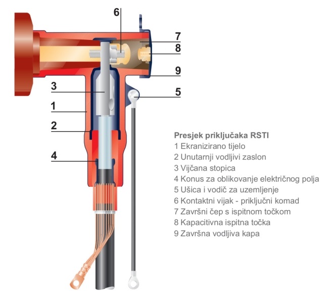 Opseg isporuke: u kompletu za 3- faze isporučuje se: ekranizirano tijelo priključka, konus za oblikovanje električnog polja, vijčana stopica (primjenjiva za Al i Cu vodiče), vijak za učvršćenje s maticom, silikonska mast, završni čep s vodljivom kapom te uputstvo za ugradnju.