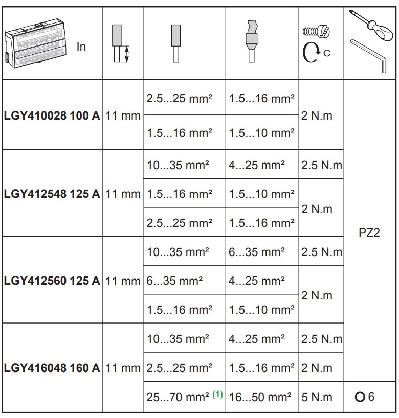 – priključak odvodnog vodiča 16 rupa do 16 mm² i 28 rupa do 25 mm²