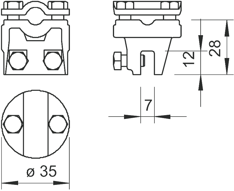 Za spajanje vodiča poprečno i paralelno na lim, s 4 vijka M6 x 16