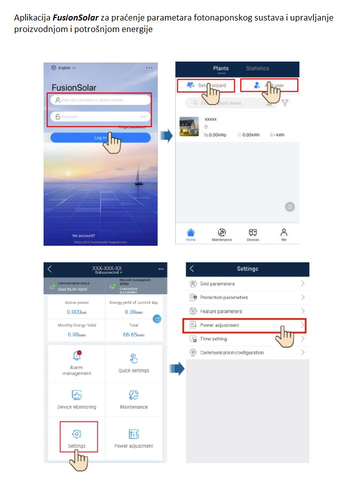 – kompaktne dimenzije i masa invertera omogućuju laku montažu, a uz pomoć aplikacije FusionSolar, puštanje samog FN sustava u pogon je lagano i brzo