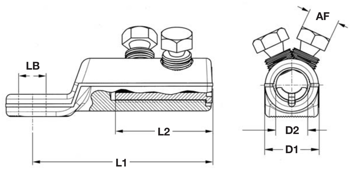 Al okrugli višežični: 35-150 mm2 (promjer vodiča: 6.8 – 15 mm), Al okrugli 1-žični: 35-150 mm2 (promjer vodiča: 6.5 – 14 mm), Al sektorski višežični: 50-95 mm2 (120-150 mm2 uz prethodno zaokruživanje vodiča), Al sektorski 1-žični: 50-120 mm2
