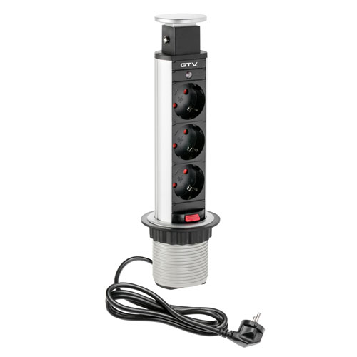 KONZOLA PRIKLJUČNA UGRADBENA U STOL 3xŠUKO S KABELOM SREBRNA GTVAEBPW3S6080