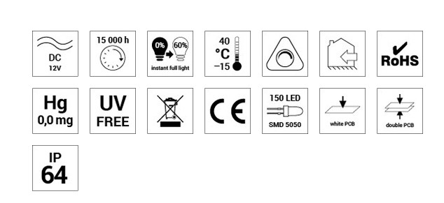 Izvor svjetlosti: LED (SMD 5050, 30 kom/m, 150 kom ukupno)