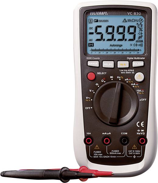 VOLTCRAFT® digitalni ručni multimetar iz profesionalne serije mjernih uređaja. Robustan, siguran, pouzdan, ergonomskog oblika – to su atributi ovog profesionalnog multimetra. Ugrađena TLD® funkcija (Test-Lead-Detection) upozorava korisnika kod krivo namještenih vodova. Kod ulaznih napona većih od 30 V na ekranu se pojavljuje simbol upozorenja