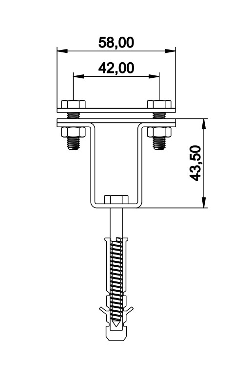 Opis: sastavljen je od nosača, dvije pločice 58 mm x 20 mm, 2 vijka M6, dvije matice M6, vijka Ø 6 x 60 mm i plastične tiple