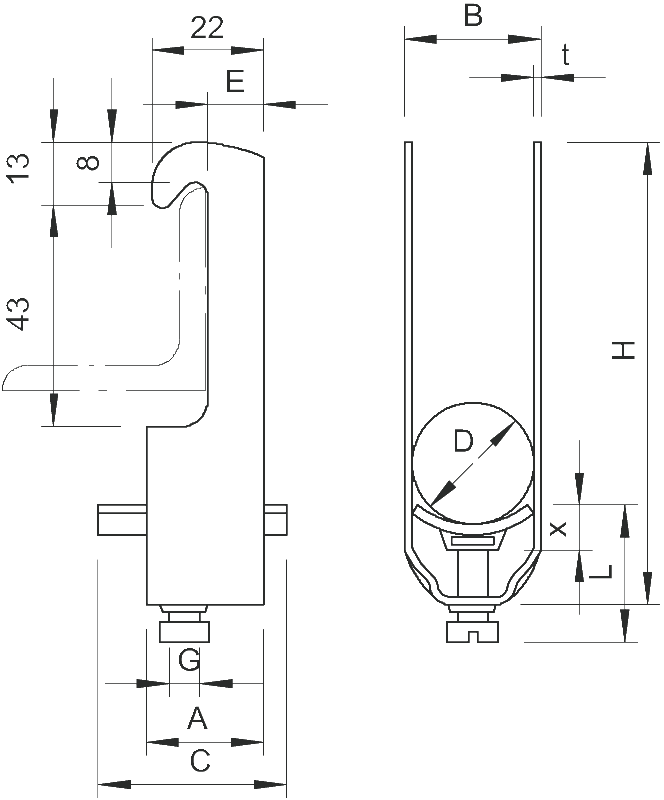 Tehnički podaci: Prikladno za kutno željezo duljine krakova od 40 mm.