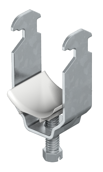 Obujmica i vijak od pocinčanog čelika, pričvrsna pločica od polipropilena, bez halogena, boja svijetlosiva RAL 7035.
