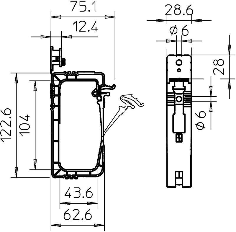 Dimenzije VxDxŠ [mm]: 122,6×62,6×28,6