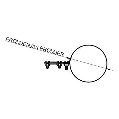 Primjena: Obujmica za slivnik tip GOS 04 namjenjena je za spust plosnatog vodiča širine do 25 mm uz slivnik ili za uzemljenje slivnika. Promjenjivog je promjera sa korakom od 5 mm ( np. 95 mm ; 100 mm ; 105 mm i.t.d.)