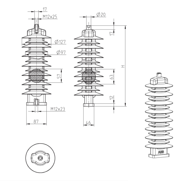 – metal-oksidni odvodnik prenapona bez iskrišta (MO surge arrester), u zalivenom silikonskom kućištu, sive boje, dizajniran i ispitan prema IEC 60099-4