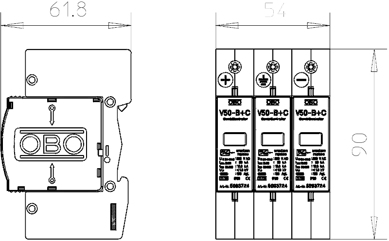 ODVODNIK PRENAPONA PV V25 B+C 3-PH900 TIP 1+2/KLASA I+II/B+C 900V DC 2P+PE 5097447