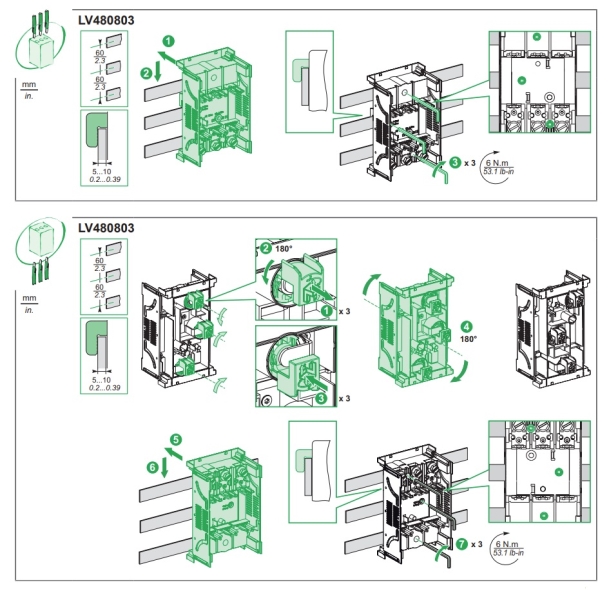 – sklopka se pomoću okretnih kuka pričvršćuje na sabirnice razmaka 60 mm