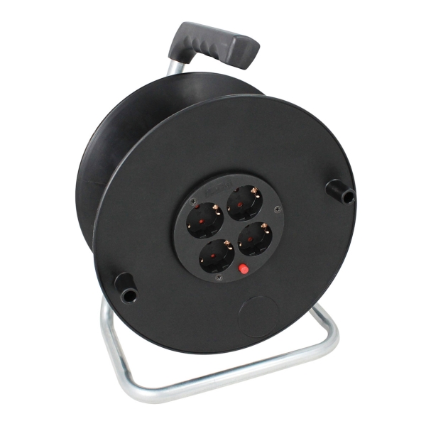 Prazna kabelska motalica (kabelska rola) na PVC bubnju 230 mm, za 25 m kabela. Ugrađeni termoprekidač, utičnice sa zaštitom za djecu