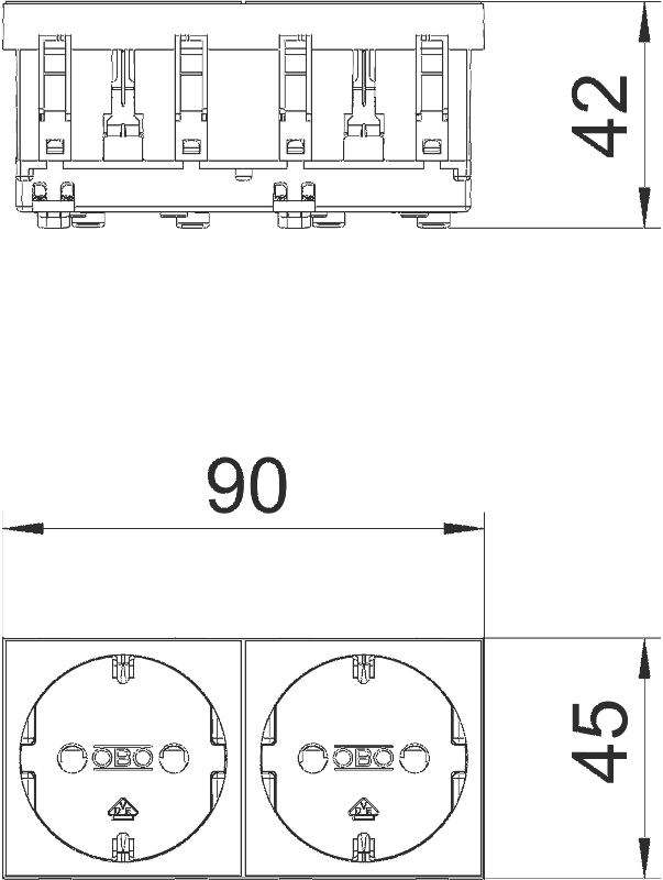 Opis: Priključnica sa zaštitnim kontaktom 2-struka 0°, s povećanom zaštitom od dodira,