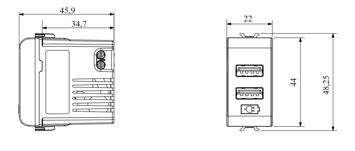 Priključnica (napajanje) USB dvostruka za ugradnju na nosače Gewiss CHORUS, 2x USB-A tip
