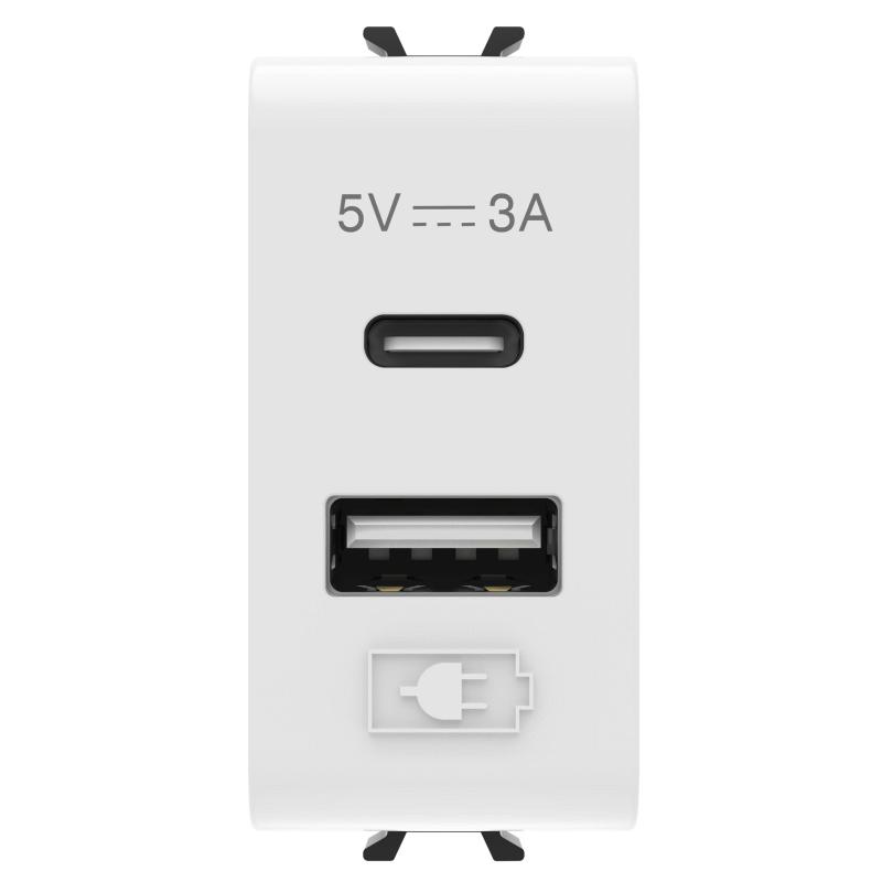Priključnica (napajanje) USB dvostruka za ugradnju na nosače Gewiss CHORUS, 1x USB-A tip + 1x USB-C tip
