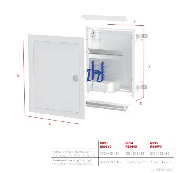 – osim spomenutog uz razdjelnik su priloženi: mrežasta montažna ploča, nosač modema, kućište CUBO 4M AC41PW-U, DIN letva/šina