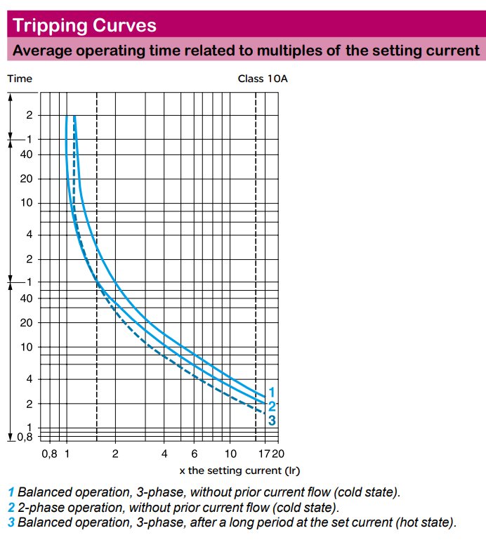 Osjetljivost na kvar faze: struja okidanja 130 % od Ir na dvije faze, zadnja pri 0 IEC 60947-4-1