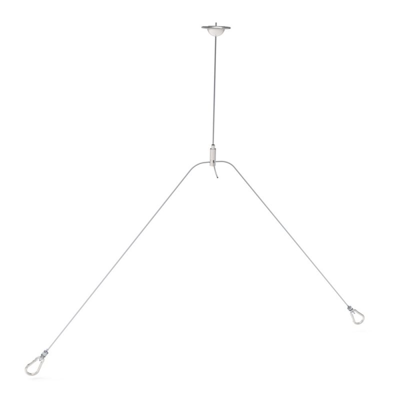 Sadržaj seta: 2 čelična užeta “Y” oblika s metalnim podnožjima, karabinjer kuka (4 kom), metalni kutnici, vijci i tiple