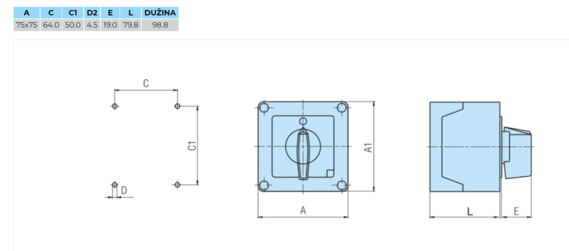 Dimenzije kućišta [mm]: 75x75x98,8