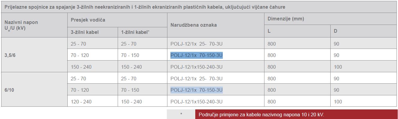 Naziv: prijelazna spojnica za spajanje 3-žilnih neekraniziranih plastičnih kabela i 1-žilnih ekraniziranih plastičnih kabela, Uo/U = 6/10 (12) kV