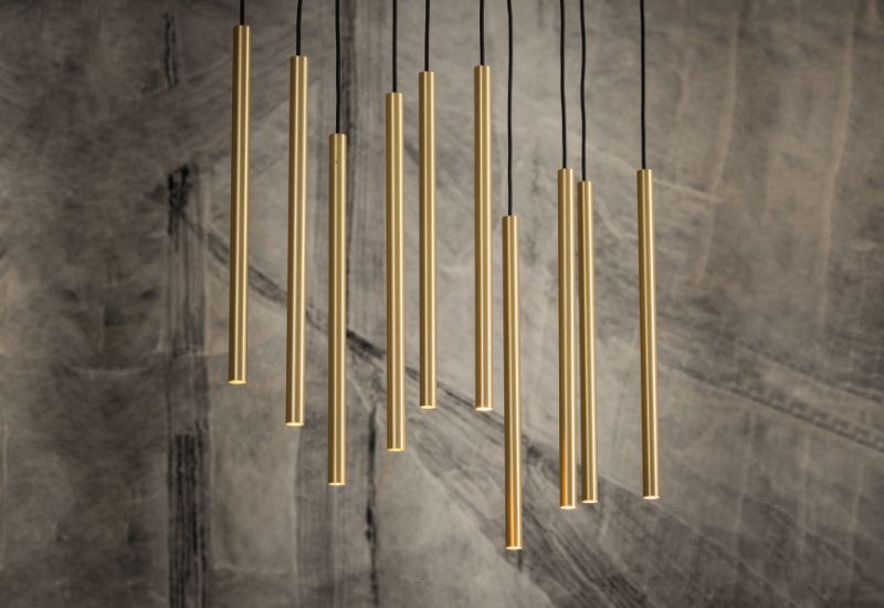Dekorativna svjetiljka – visilica, s kućištem u kombinaciji čelika i mjedi, podešavanje visine do 130 cm