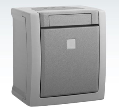 TIPKALO N/Ž 1P 10A/250V IP54 S ILUMIN. SIVO WPTC4017-2GR